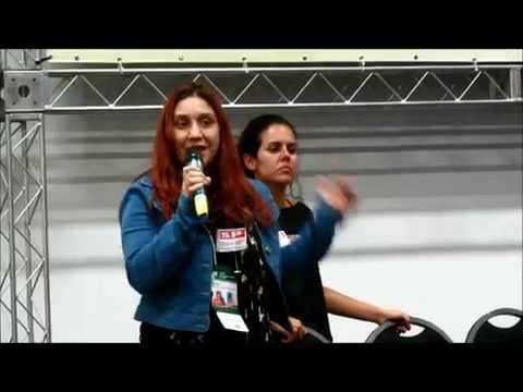 Juliana (MNOB-SP) e Patricia (MNOB-RJ) fazem a defesa da Tese do Movimento Nacional de Oposição Bancária/CSP-Conlutas, durante o 24° Congresso dos Funcionários do BB.